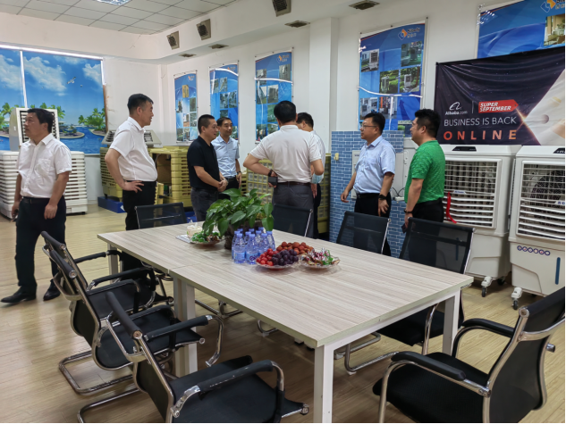 在会谈上陈总介绍了西伯力产品通风制冷节能环保的优点、市场的前景,应用场所,目前国际形势对我们是挑战也是机遇,坚持自主研发脚踏实地肯定能有属于西伯力的未来,西伯力冷气机通过多层纤维水膜吸收空气的热能形成冷气降温后源源不断地送入室内,并将室内带有异味、灰尘、温度较高的浑浊空气排出室外,使室内的温度得到降低,还能通风、除异味、排热补新风、避免细菌滋生、净化空气、增加空气含氧量、提人员的升舒适度,大大降低疫情传播的风险,